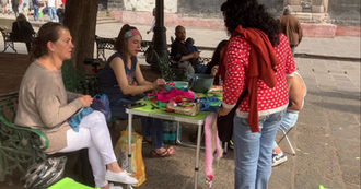 On December 3, we gathered in centro de coyoacan park for "Sewing as Therapy" - a public event initiated by Mady Cano resident artist at Casa Ojala. As part of this social therapy, everyone was welcome to join us around a table in the park to sew: we brought together beads and textiles, found and discarded objects, social incongruities and broken relationships and made new connections and formed new fabrics.